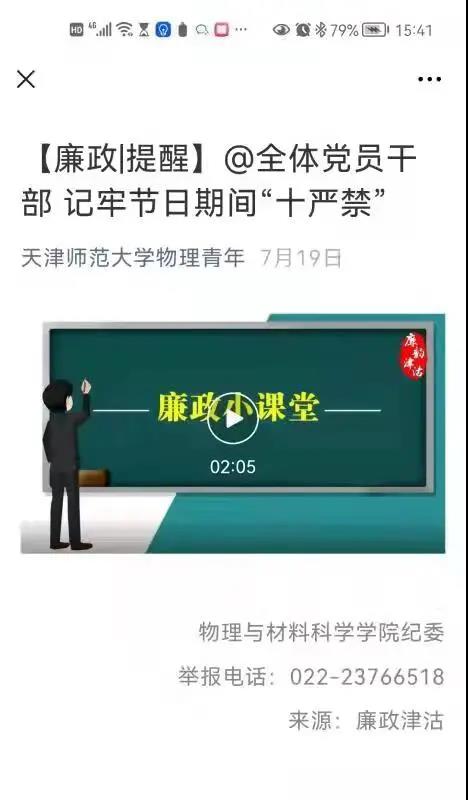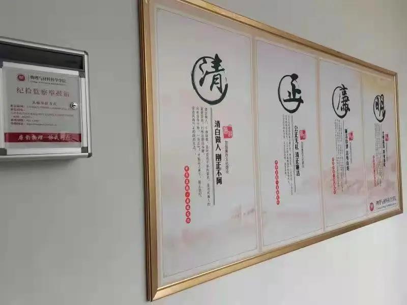 beat365正版唯一官网必一纪委自成立近一年以来,主动作为,积极探索建立具有学院特色的监督体系,扎实推进基层学院全面从严治党向纵深发展,营造学院风清气正的政治氛围。从建立学院纪委工作制度到组建学院纪委三支监督信息员队伍,从畅通监督渠道到营造廉政氛围,加大宣传力度,采用线上线下、实践活动、主题宣讲等多种形式,多措并举打好建设好廉政文化的组合拳。除了廉政文化墙建设外,在明理楼内外张贴新时代高校教师职业行为十项准则、清正廉明廉政文化展板、设立举报箱。在学院官方网站增设“纪检监察”版块,设立廉政提醒、廉政课堂、廉政文化、举报渠道栏目,在官方微信公众平台“物理青年”每周推送廉政-提醒专题,转载“廉韵津沽”的廉政小课堂内容,在求实教室推出“廉政主题影片赏析”系列活动,每月推出相关主题电影,邀请师生一起欣赏,在润物无声中推动师生廉政意识入脑入心,努力营造“人人思廉、人人倡廉、人人行廉”的廉洁文化氛围。