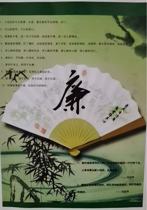作品简介:自古以来,竹就象征着刚正不阿、坚持自我,而莲花更是廉洁的代表。在当下的时代,我们要如竹如莲一般做事公正廉洁,坚守住自己的初心,为廉政建设贡献一份自己的力量。