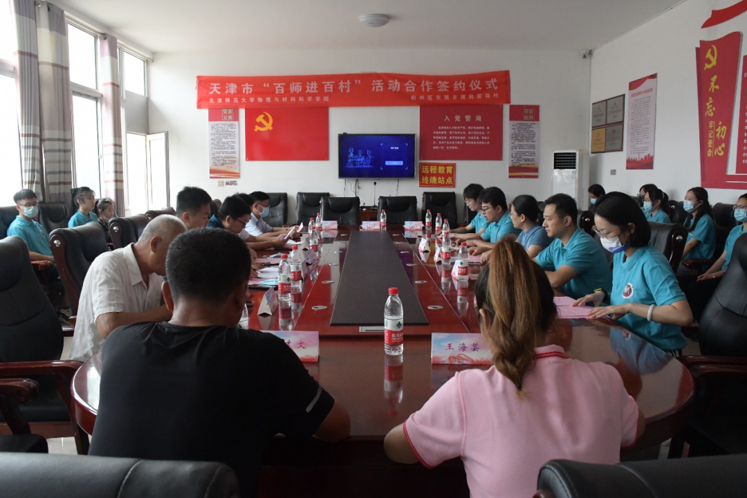 科普实践团成员们迎着酷暑来到蓟州区东施古镇韩家筏村进行天津市“百师进百村”签约仪式并开展实践活动。