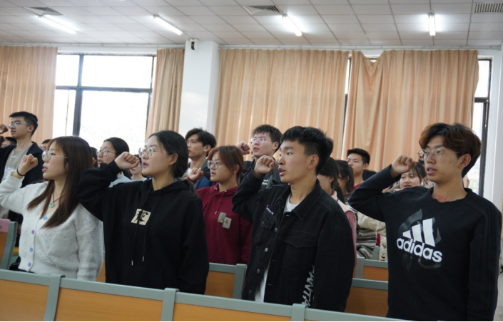 随后,全体学生干部进行了宣誓。誓词铿锵有力,表达了同学们对于学生工作的热忱、积极服务同学的奉献精神。