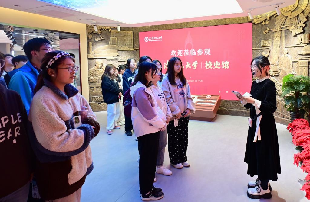 校史馆展厅分为序厅、传承、创业、登攀、聚力、奋进、撷英、筑梦等8大展区。新生们在讲解志愿者的带领下有序参观,一幅幅珍贵的历史照片,一件件刻满岁月痕迹的实物展品,一个个鲜活的人物故事,将尘封的历史瞬间激活,把学校发展历程中一个又一个重要时刻和一代又一代师大人不懈奋斗取得的卓越成就栩栩如生地展现在同学们眼前,使同学们深切感受到学校鲜明的师范特色和独特的精神风貌。