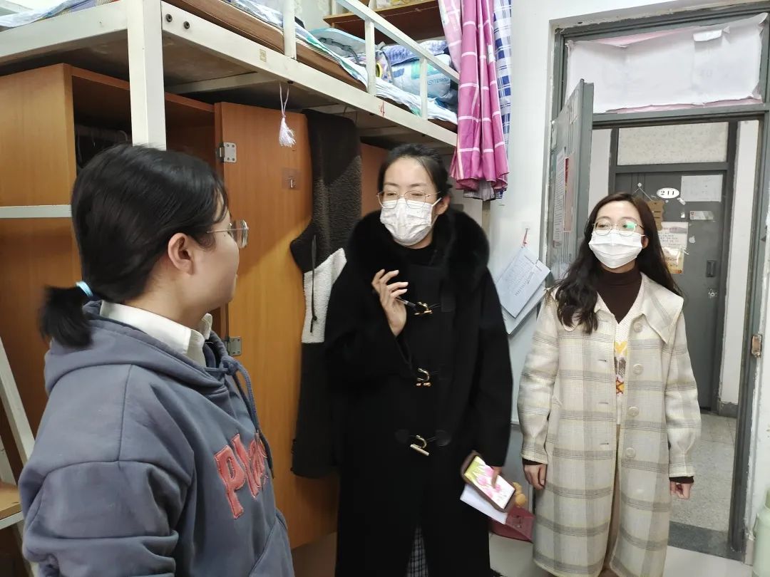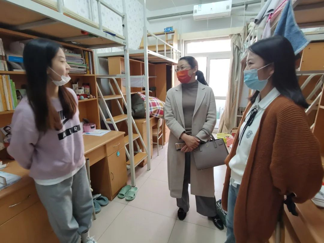 2022年3月7日,beat365正版唯一官网必一第一批返校学生陆续回校,学院党委书记张梅老师、党委副书记赵晓艳老师、副院长吴景波老师、副院长王守宇老师以及学工办辅导员和班主任老师走进学生宿舍进行走访。