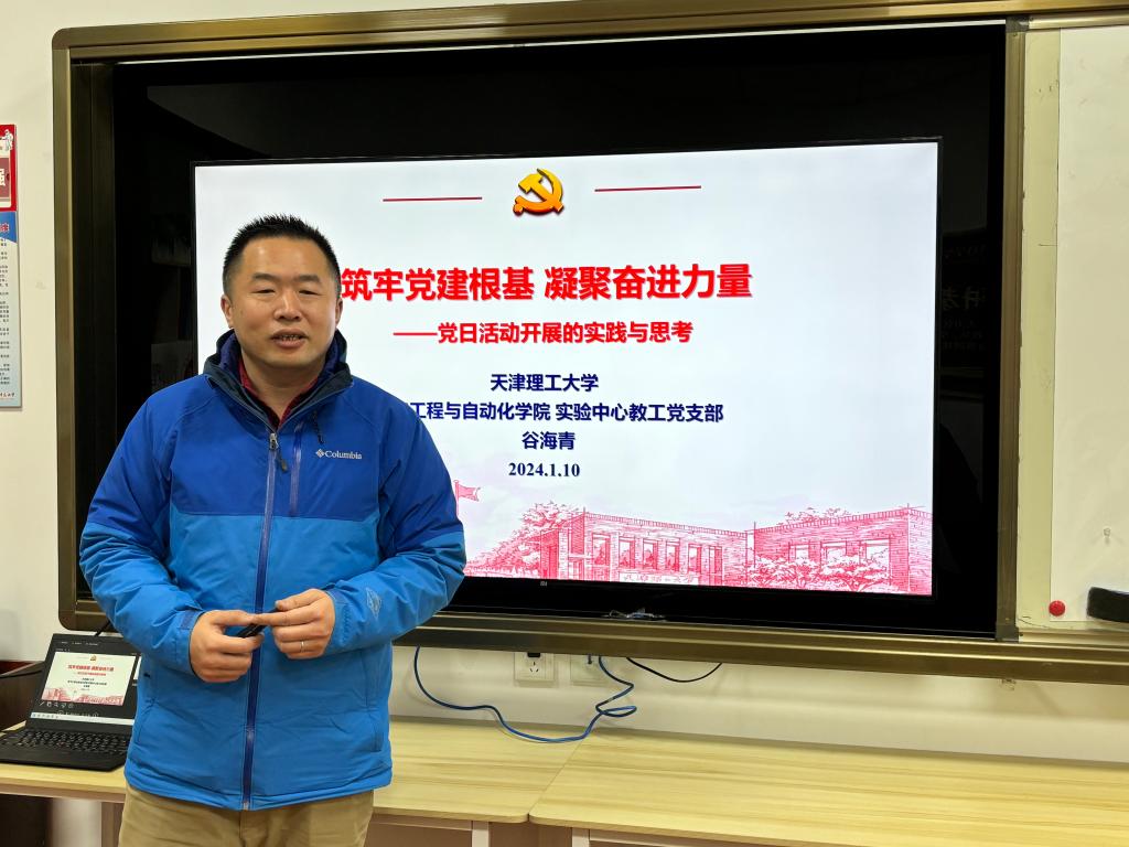 谷海青以《筑牢党建根基凝聚奋进力量——党日活动开展的实践与思考》为主题,从做好规定动作,在“学思”上下功夫、创新实践载体,在“践悟”上下功夫和服务中心工作,在“力行”上下功夫三个方面,介绍了他带领党支部开展支部建设和主题党日活动上的丰富经验。活动中,谷海青还结合所在支部获评第二批新时代天津市高校党建“领航工程”创建培育单位建设情况,和“以学生科技活动为抓手,创新师生党建协同机制”天津市教育系统“创最佳党日”优秀活动情况与大家进行了充分交流。