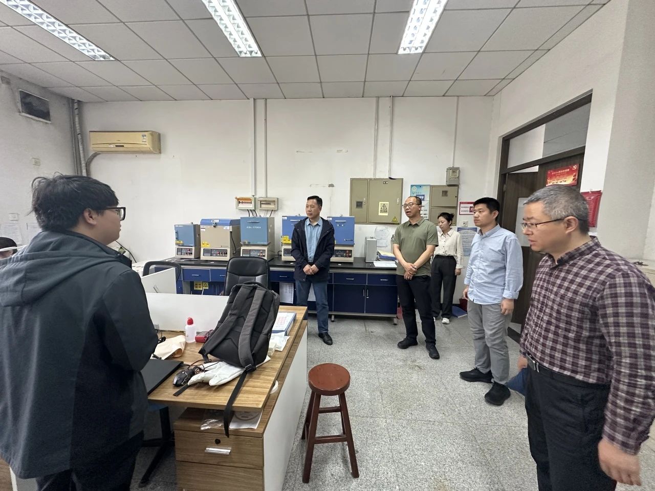 学院领导班子走进学科实验室,对仪器用电情况,实验室整体卫生进行了全面检查。重点对安全操作规程,实验室设备以及个人防护安全开展巡查。结合近期校园实验室安全事故,提示开展实验的老师、同学注意卫生及用电安全。五一假期,如有同学因课题需要开展实验,需严格遵守学校相关管理规定,确保实验室安全运行。