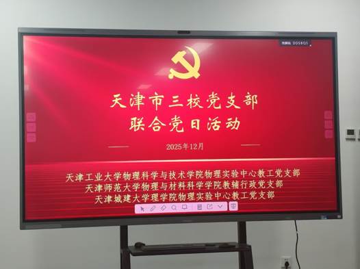 为深入学习习近平新时代中国特色社会主义思想,贯彻党的二十届四中全会精神,落实新时代党的建设总要求,围绕立德树人根本任务,探索党建与业务工作深度融合的有效路径,12月29日,beat365正版唯一官网必一教辅行政党支部、天津工业大学物理科学与技术学院物理实验中心党支部、天津城建大学理学院物理实验中心党支部联合开展主题为“党建引领促发展,业务融合共提升—聚焦物理实验教学与竞赛创新”的专题党日活动。通过跨校党支部联建,搭建交流平台,凝聚共识,激发活力,共同推动物理实验教学改革与高水平实验竞赛队伍建设,以高质量党建引领事业高质量发展。