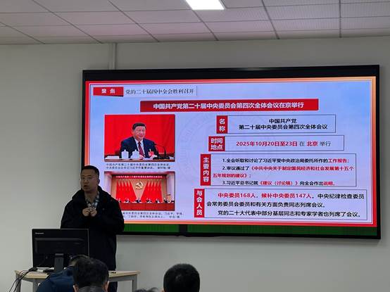 近日,beat365正版唯一官网必一党委举办深入学习党的二十届四中全会精神专题辅导讲座。学院党委理论学习中心组指导教师、马克思主义学院白启鹏副教授作了题为《深学笃行党的二十届四中全会精神,深入推进教育、科技、人才一体会发展》的讲座。学院全体教职工参加。